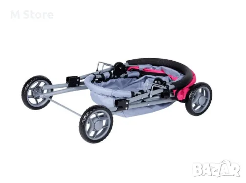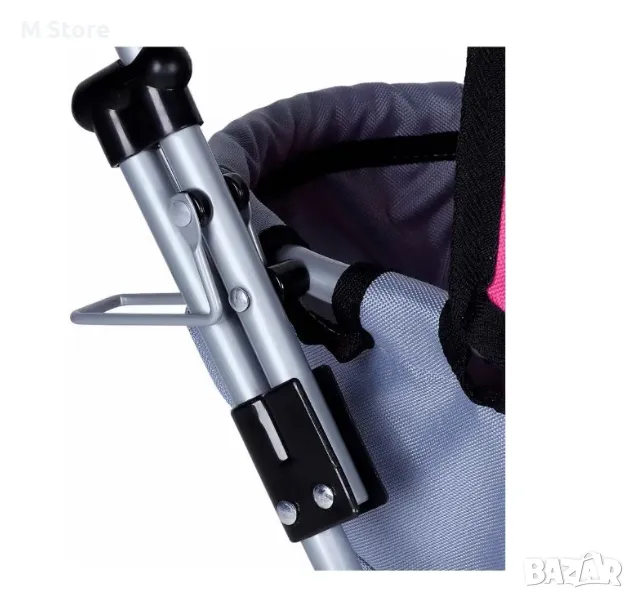 Металната рамка предлага стабилност и издръжливост, 4-те колела осигуряват повишена маневреност. Това е перфектният избор за малките с приключенски дух, като им дава възможност да вземат любимата си кукла, където и да отидат.