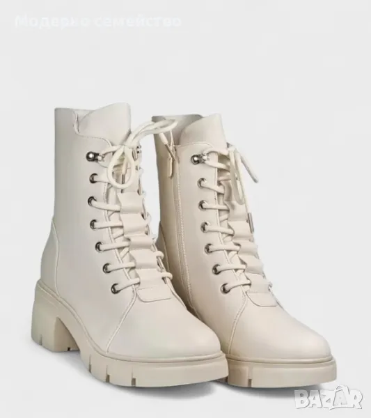 Стилни дамски боти в бяло с връзки → Обява 48121460