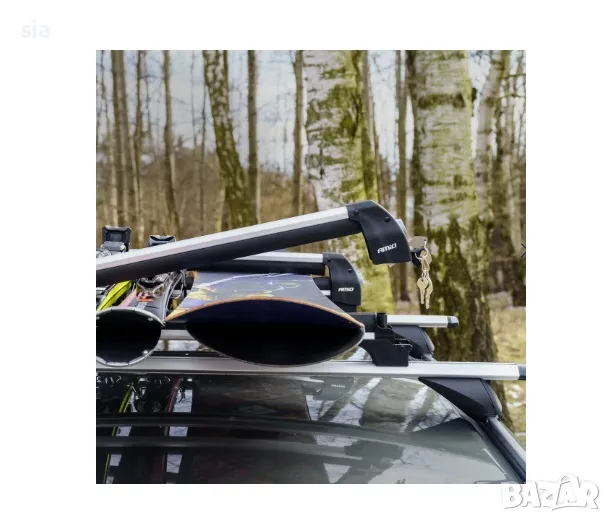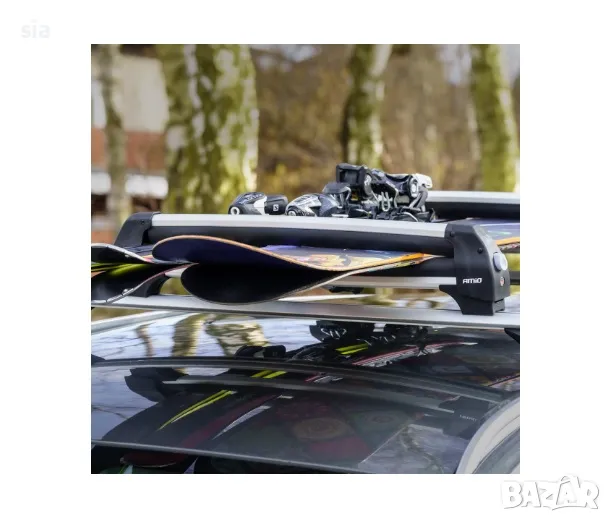 Този алуминиев багажник за ски може да носи до 4 чифта ски или 2 сноуборда.