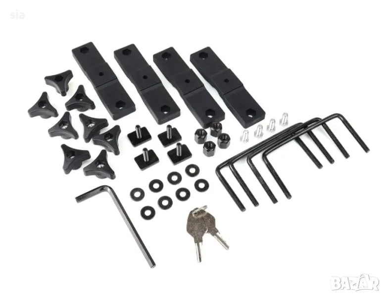 Носачът е подходящ за монтаж върху алуминиеви товарни щанги, щангите трябва да имат стандартен монтажен канал с ширина 20-22 мм.