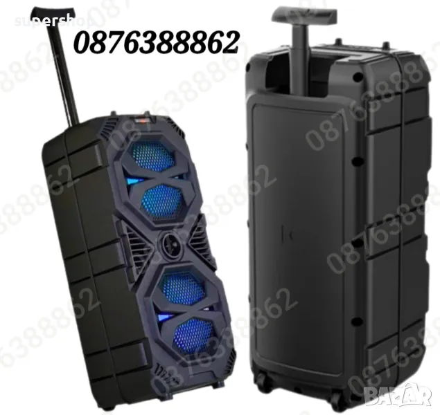 Нов модел Голяма Караоке Тонколона 16 инча басов говорител, 60см. с Дистанционно, Блутут, Безжичен Микрофон, Лед Светлини, МP3 плеър от SD карта или флашка, вградена акумулаторна батерия, Колелца и удобна дръжка за пренасяне, с много добро качество, на ниска цена.