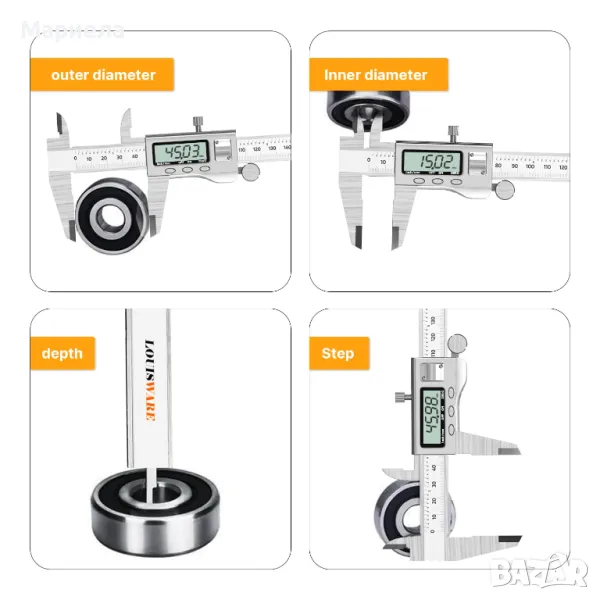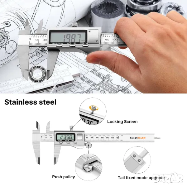LOUISWARE Електронен цифров шублер до 150мм. / Професионален Метален Шублер от Неръждаема Стомана