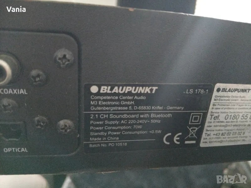 Продавам саундбар Blaupunkt LS 178-1, в много добро състояние, работещ, с Bluetooth, внос от чужбина. Няма дистанционно.