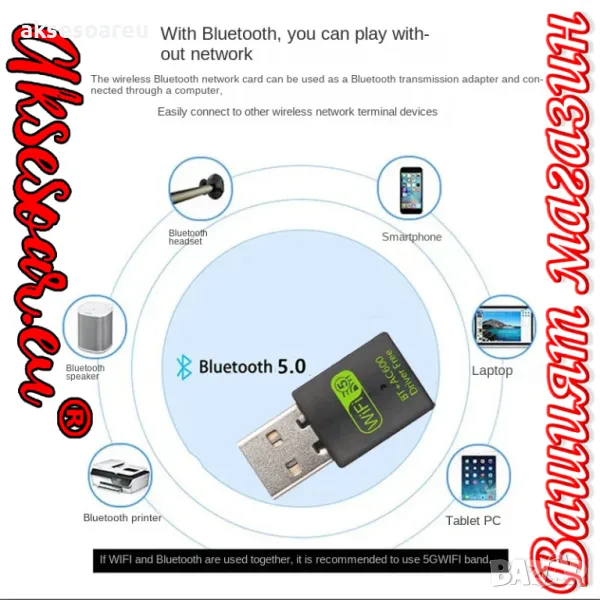 -Име на артикул: Двубандов WiFi и Bluetooth - съвместим