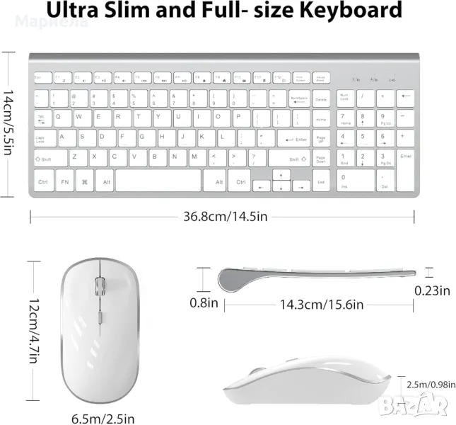 Комплект Безжични Клавиатура и Мишка / Ултра Тънка Безжична Клавиатура