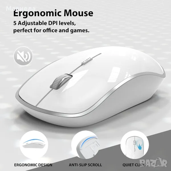 J JOYACCESS безжична клавиатура, всички клавиши са тип ножица и вилица с нископрофилна структура, ултратънка (ход на клавиша 2 мм), отзивчива, ниско ниво на шум. Преносимата мишка също е вградена с най-новия безшумен превключвател за тихо щракване. Клавиатурата и мишката осигуряват спокоен свят и модерен офис.