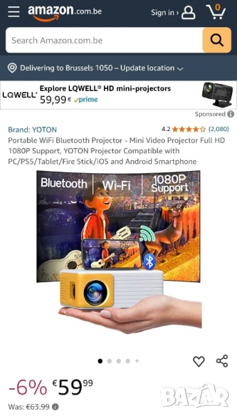 Проекторът е високо оценен от потребителите на Amazon и е с 4.2 от 5 звезди и над 2000 потребителски оценки /виж последна снимка на обявата/.