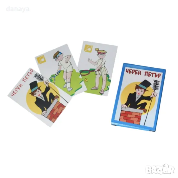 Карти за игра Черен Петър съдържа 25 броя хартиени карти с илюстрации, като две по две картите са с еднакви илюстрации, и една карта с Черен Петър.