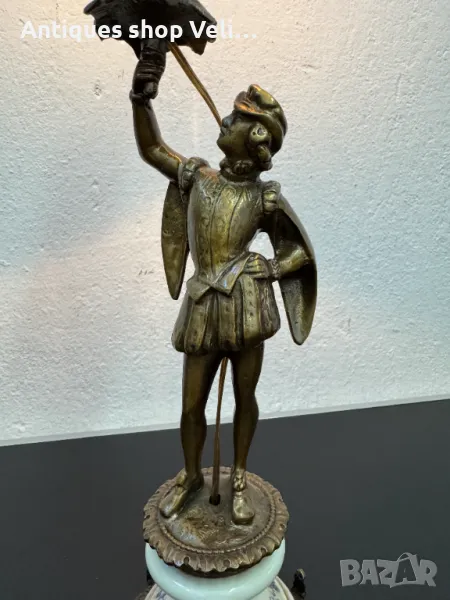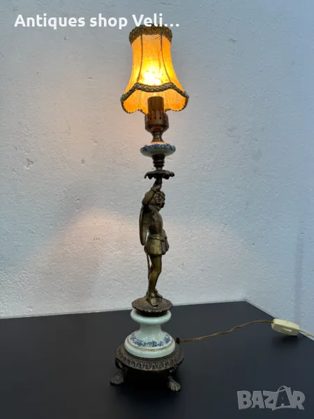 Изящна стара италианска лампа, изработена от висококачествен бронз и порцелан. Тази лампа впечатлява със своята елегантност и внимателно изработени детайли, които придават неповторим чар на всеки интериор. Идеална е за колекционери и любители на антики, които ценят класическото италианско изкуство и майсторска изработка.Предлагаме доставка с Еконт и лично предаване за градовете Велико Търново, Русе и Сливен. Височина-56см.