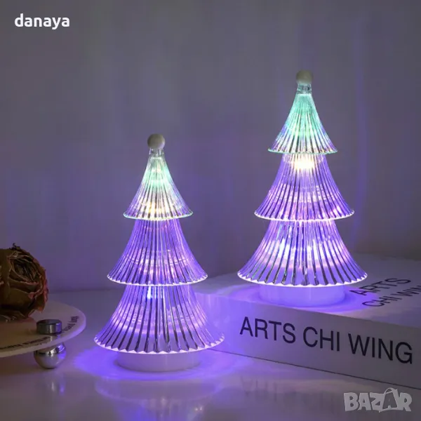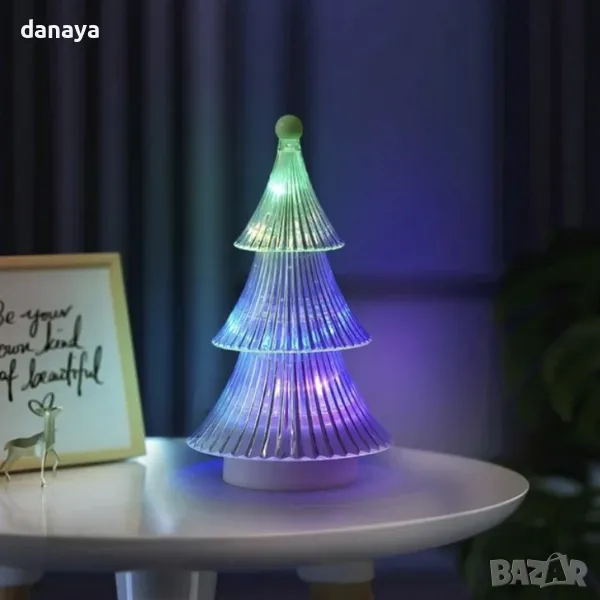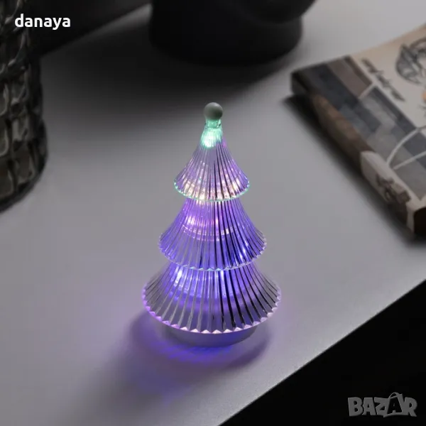Малка светеща елхичка, която свети в преливащи многоцветни лед светлини. Красива коледна декорация за всеки дом или офис. Малка нощна лампа, чудесна идея за подарък. Елхичката работи с 3 малки AG10 батерии, които са включени в комплекта. С копче за включване и изключване. Коледна украса, която ще вмъкне много коледно настроение, където и да я поставиш!
