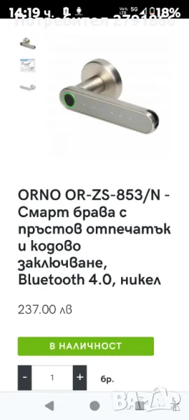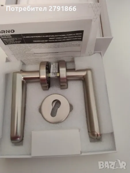 Комбинирана дръжка за врата със сензорна клавиатура и смарт функция - четец на пръстови отпечатъци, Bluetooth 4.0, никел