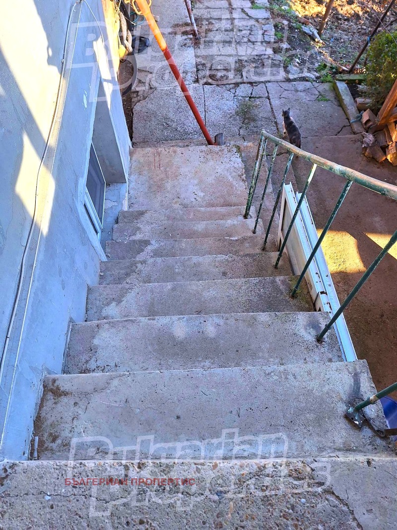 Първи етаж - кухня, санитарен възел, две стаи и мазе. Външни стълби.