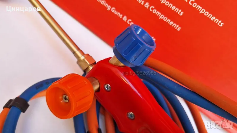 Горелка газ-кислород с дюзи 5бр, маркуч 3,5мм/180см. с клапани гасителни. Произход Италия