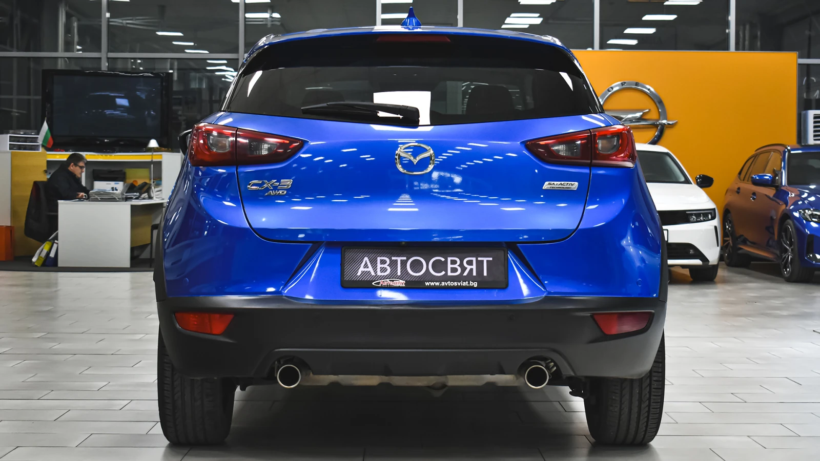 Автосвят ООД - официален представител на Opel и Mazda, предлага на Вашето внимание проверен автомобил Mazda CX-3 2. 0 SKYACTIV-G EVOLUTION 4x4 Automatic Допълнителни услуги: - лизинг; - сътрудничество при регистрация; - възможност за обратно изкупуване; - посредничество при застраховане; - посредничество при завеждане на щети при застрахователя. Цвят - Dynamic Blue Metallic SKYACTIV BODY - лека структура използваща високоякостна стомана 1800 МРа ABC/EBD/EBA антиблокираща спирачна система с разпределение на спирачното усилие и спирачен асистент за екстремно спиране DSC/TCS система за динамичен контрол на траекторията и срещу пробуксуване и поднасяне 8 въздушни възглавници предни, странични и завеси за всички места 3PSB автоматични 3-точкови предпазни колани с дообтегачи и ограничители на силата на притягане ISOFIX система за монтиране на детско столче на задните външни места Active headrest активни предни подглавници предпазващи от травми при камшичен удар ESS (Emergency Stop Signal) автоматично включване на аварийните мигачи при рязко спиране HHA Hill Hold Assist система за подпомагане при потегляне под наклон TPMS система следяща налягането на гумите чрез директно измерване SCRS (Secondary Collision Reduction System) реактивна система, предотвратяваща сблъсък след камшичен удар, STI (Smart Turn Indicator) активиране на мигачите с леко докосване на превключвателя и автоматично изключване след 3 такта, Подгряване на страничните огледала Cruise control система за поддържане на постоянна зададена скорост с управление от волана Регулиране на пасажерската седалка по височина i-Stop система за изключване и рестартиране на двигателя при спиране или престой в трафик Coming / Leaving Home изпрати ме до вкъщи функция за забавено изгасване на светлините Mazda Info Display борд компютър (среден и моментен разход, оставащ пробег и средна скорост), оборотомер, индикатор за гориво, температура на двигателя и системите за сигурност SCBS (Smart city brake support) система предотвратяваща сблъсък при скорост от 4 до 80 км/ч Електрохроматично огледало за обратно виждане 7 touch screen мултимедиен дисплей с висока резолюция HMI интерактивен командер за управление на системите Климатроник двузонален автоматичен климатик Автоматично включване на фаровете сензор за светлина Автоматично включване на чистачките сензор за интензивност на дъжда Допълнителен USB за предните места и 2 USB входа за задните места 12V изход Bluetooth система за безжично управление функциите на телефон DEVIL S LOOK основни фарове LED дневни светлини LED фарове за мъгла LED задни светлини включително и за задна скорост LED фарове за мъгла Автоматично включване на фарове-сензор за светлина Автоматично включване на чистачките-сензор за дъжд Заден парктоник 4 сензорен Тонирани задни стъкла 70%, с UV и топлинна защита Подгряване на предните седалки 3 степенно с електронно управление Автоматично сгъваеми странични огледала при заключване на автомобила и бутон за деактивиране при необходимост LDWS (Lane Departure Warningt System) система следяща за отклонение от лентата на движение HEAD UP display цветен проекционен дисплей над таблото визуализиращ информация от навигационната система, круиз контрол, системите за сигурност, и пътни знаци Smart key безконтактно отключване на вратите, и автоматично заключване при отдалечаване Цветна камера за обратно виждане с проектиране на траекторията на маневра и дистанция върху централния дисплей Кожен салон Алуминиеви джанти Mazda, двуцве