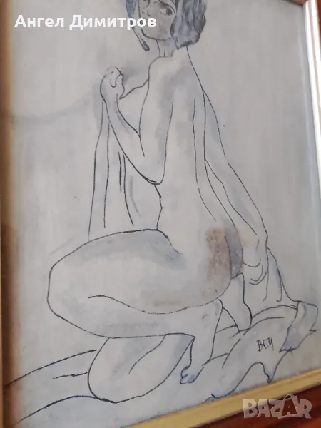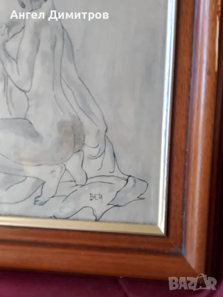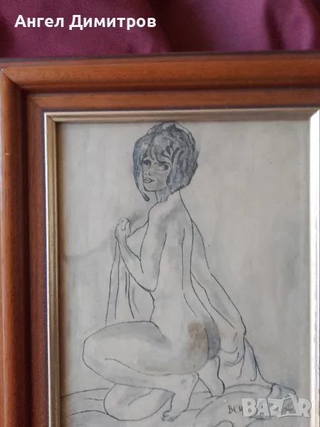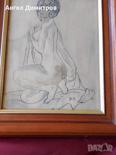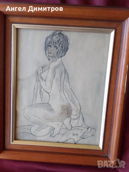 Стоян Венев картина смесена техника , 25-20 см картината хартия , 33-29 см с дървената рамка и стъкло