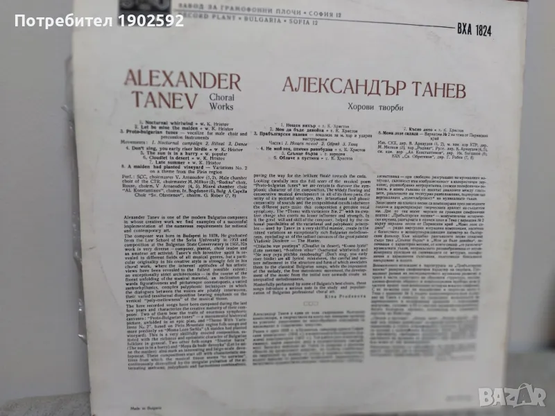 Александър ТАНЕВ. Хорови творби ВХА 1824, снимка 1 - Грамофонни плочи - 48129372 Александър ТАНЕВ. Хорови творби ВХА 1824, снимка 2 - Грамофонни плочи - 48129372 1/2