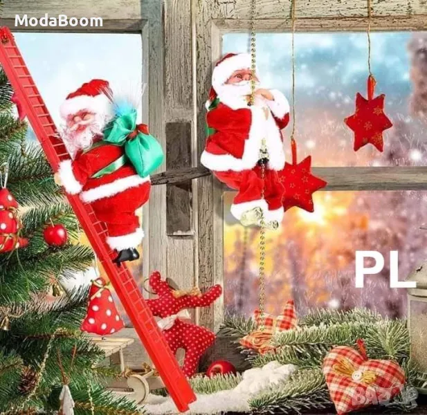 Единствена по рода си декорация: Дядо Коледа с изкачваща се стълба и музикален съпровод – неповторимо допълнение към вашата празнична украса.