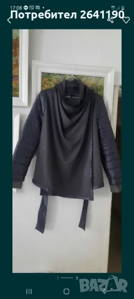 Палтото е без подплата, интересен модел, без забележки.Може да се носи и отворено. Размер М, но става и за С иЛ.цена 50 лв.