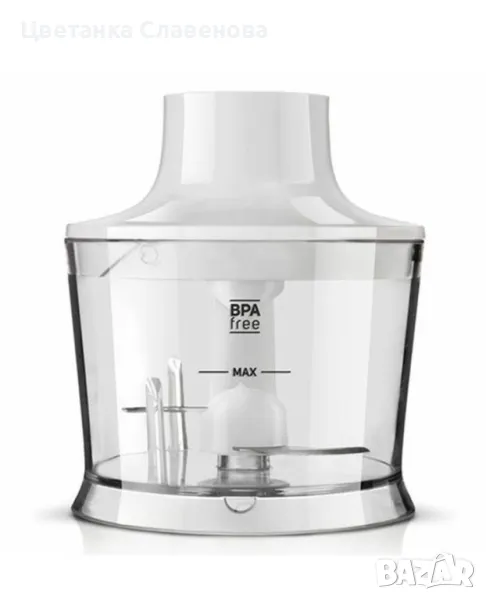 Аксесоари: Състои се: 500 мл мерителна чашка, 350 мл чаша за рязане и емулгатор. Всичко е без BPA и е безопасно за съдомиялна машина. Лесен монтаж и демонтаж.