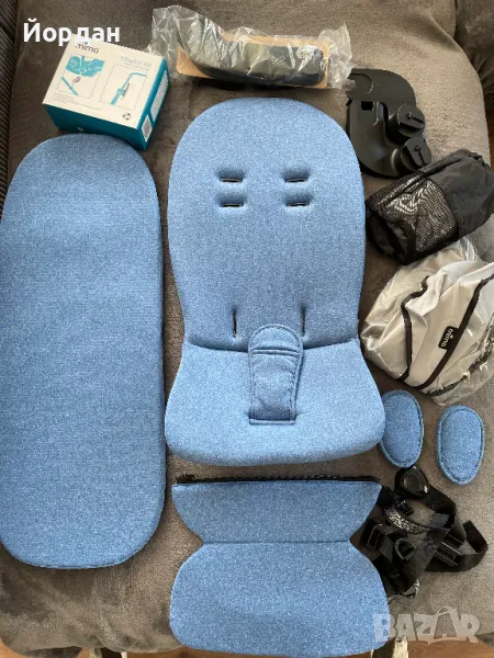 • Матрак за седалката, колани с омекотители, матрак за коша за новородено и малка част, която се прикрепя към покривалото на коша за новородено.