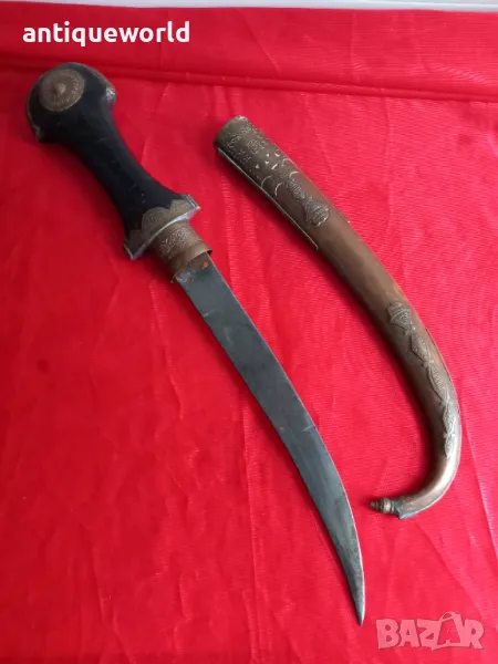 Много Красива Голяма Стара Кама КУМАЯ , Ханджар. Красива Медна Орнаментирана Кания.Незаточена.