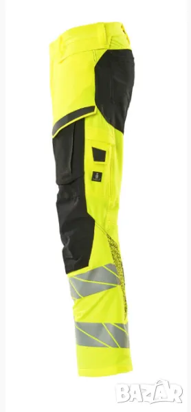 Изключително разтеглив материал осигурява уникална свобода на движение и висок комфорт.; Водоотблъскващият многофункционален разтеглив материал съчетава ниско тегло с много висока издръжливост.; Ергономично оформените крачоли са конструирани да следват естествените движения на тялото.; Подсилен джоб за линийка.; Подготвени за джобове на кобур 19450-126, които се захващат с копчета.; Джобовете за наколенки от издръжлив CORDURA® са регулируеми, така че наколенките да имат оптимална позиция на коленете ви.; Съвместно сертифициран за използване с наколенка MASCOT тип КЪСА или ДЪЛГА, тъй като джобът на наколенката е с регулируема височина. От гамата MASCOT® ACCELERATE SAFE.