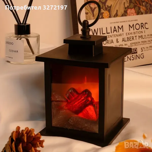 Декоративен фенер за камина с реалистичен вид на пламък.