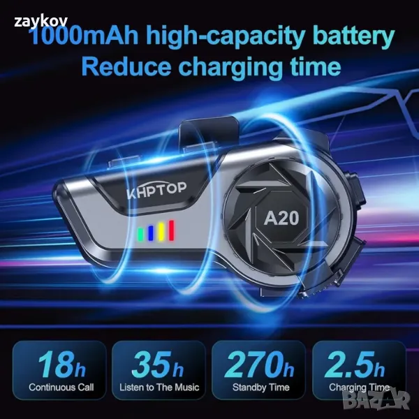 Автоматична реакция и гласово управление: Високоговорителите за мотоциклетни каски A20 имат система за интелигентен гласов асистент. Можете просто да натиснете бутона за гласово управление на слушалките на каската. Слушалките могат да отговарят автоматично на обаждания, което прави шофирането ви по-безопасно. Активиране с едно кликване на функцията за гласов асистент, позволяваща на потребителите да използват Google Voice Assistant, навигация и др.