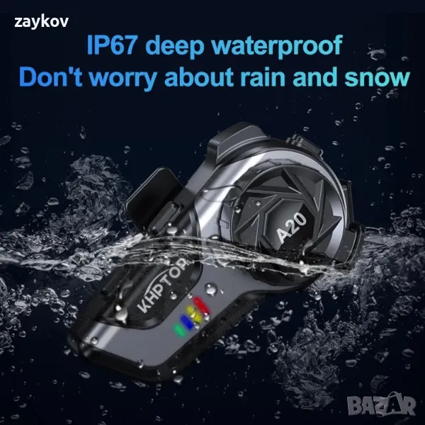 IP67 водоустойчивост и каране на открито е по-успокояващо: ABS + силиконова компактна структура осигурява дълбока защита за вътрешните части, без страх от вятър и дъжд и гладко каране. Гласов асистент за събуждане с един бутон Пуснете музика, навигация за пътуване, провеждайте телефонни разговори и карайте по-лесно и удобно. Можете да използвате Bluetooth мотоциклетната каска в дъждовни и снежни дни.