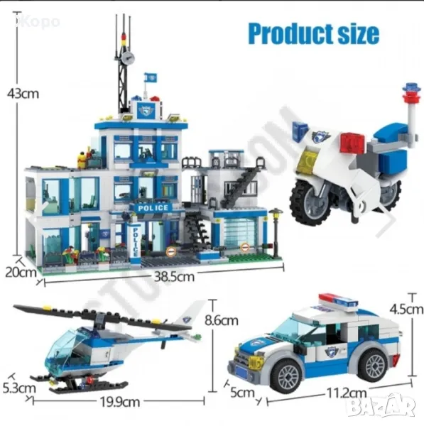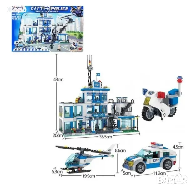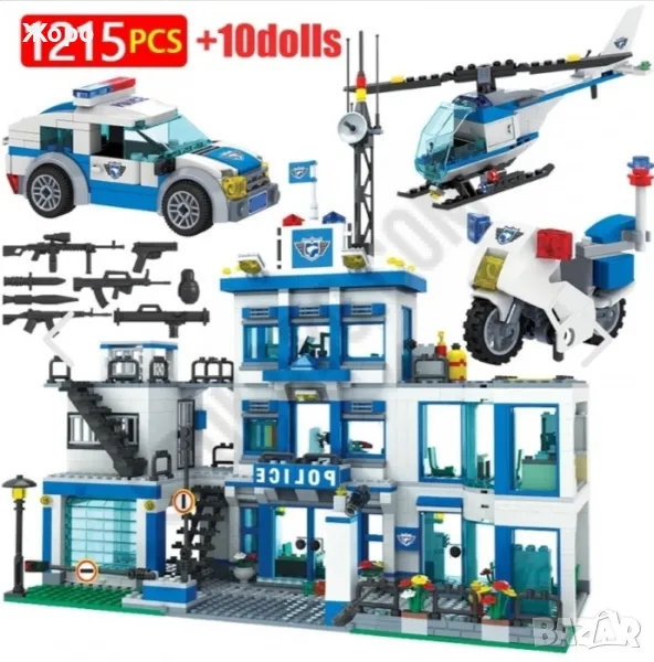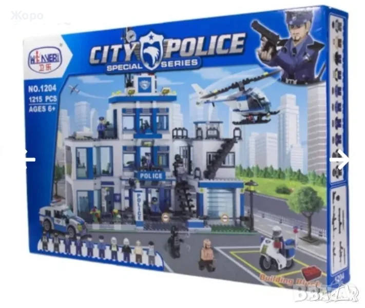 Конструктор градски полицейския участък от серия city police.включва управлението което се състои от четири нива със стълби за авариен изход, асансьори, големи лъскави прозорци и тераси на които патрулират полицаи.