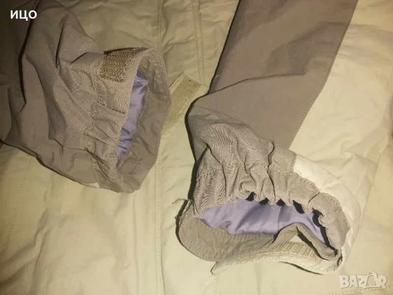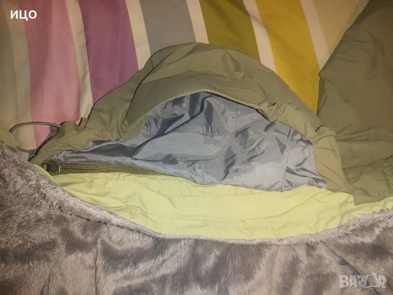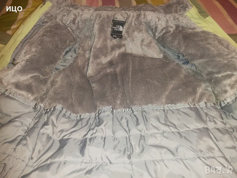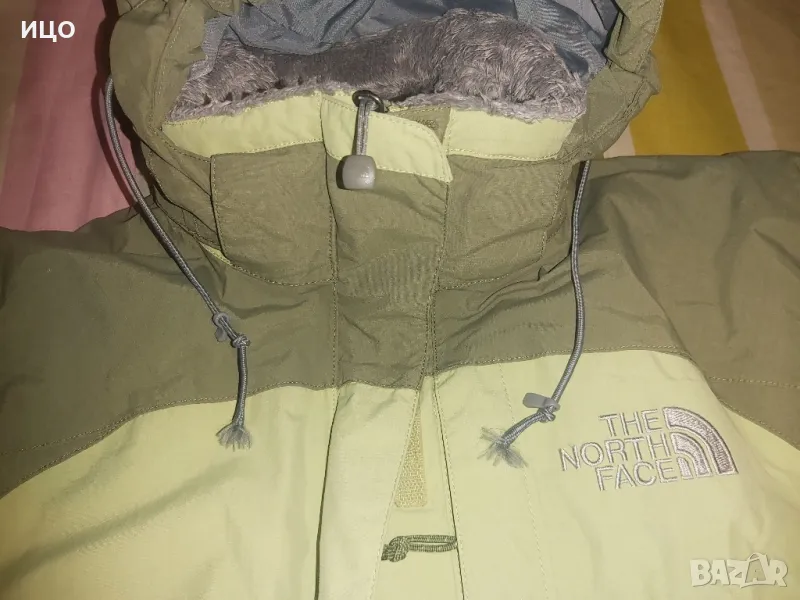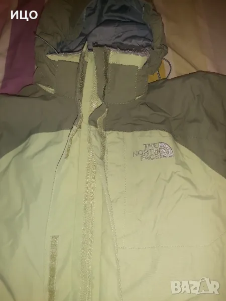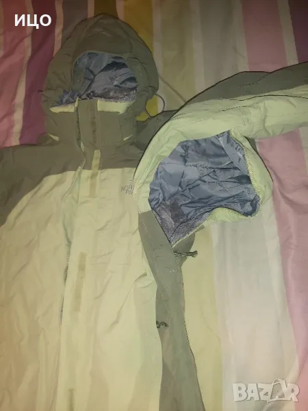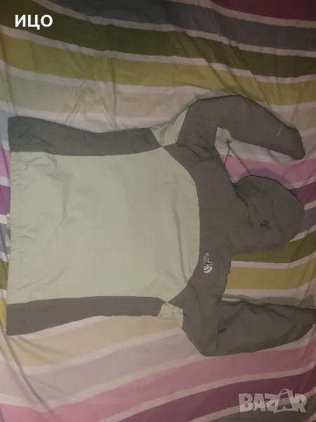 The North Face. Със цип нагоре и на долу и залепващо затваряне. Два предни джоба и горен с цип, на подмишниците с цип и вътрешен джоб с цип. Сваляща се качулка с цип и копчета. Забележката е, че има на едно място леко зацапано и връзките на качулката крайщата са разтворени има ги на снимките. Дължина от рамо до долу 62см. широчина на подмишниците 54см. Размер S. Цена 125лв.