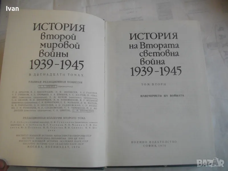 Том 2 - Навечерието на войната - 1976г - 544 стр.- без налични карти, със снимков материал. Много запазен външен вид, без наранявания по кожените корици. Вписвания и подчертавания по страниците с химикал. Цена 59 лв.