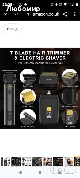 Solimpia Машинка за подстригване на коса за мъже Тример за брада Безжичен T-Blade