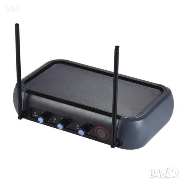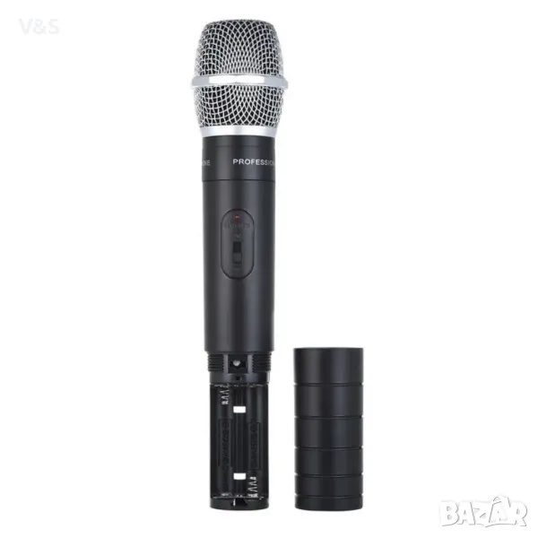 двуканален vhf безжичен ръчен чифт микрофони, с интегриран ехо ефект, отлично съотношение сигнал/шум. независимо копче за контрол на звука за канал a и канал b. достигат до 40 метра в открити пространства. за следване изброяваме основните характеристики: