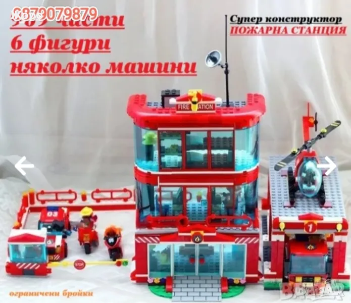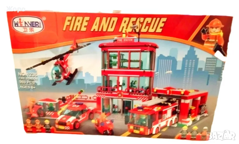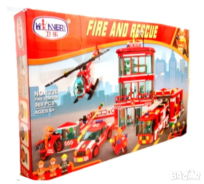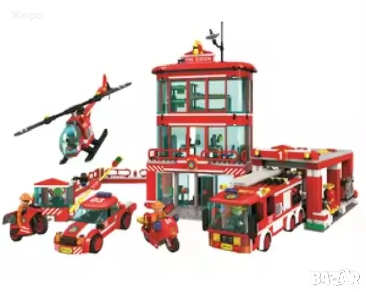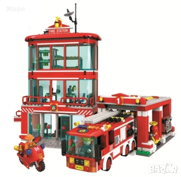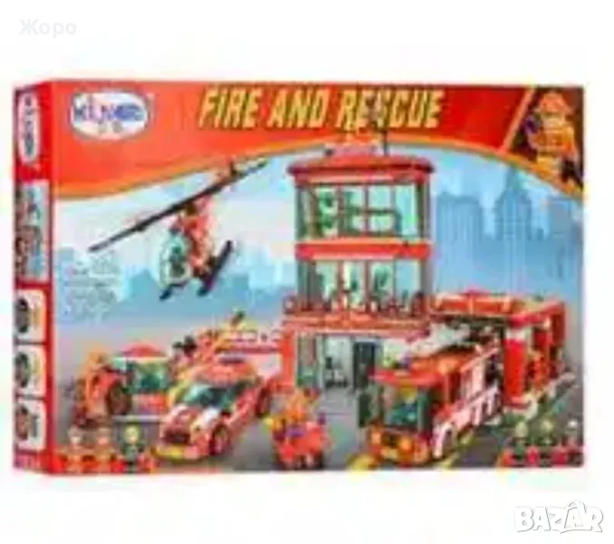 Пожарникарски комплект включва 969 части съвместими с конструкторите на Лего и състои от пожарникарска сграда на три етажа, с място за кацане на вертолет остъклени кабини и хангар за пожарникарски камион, включва и пожарникарски камион със стълба, пожарникарска кола , мотоциклети , вертолет и фигурки на пожарникари