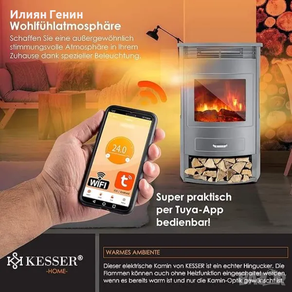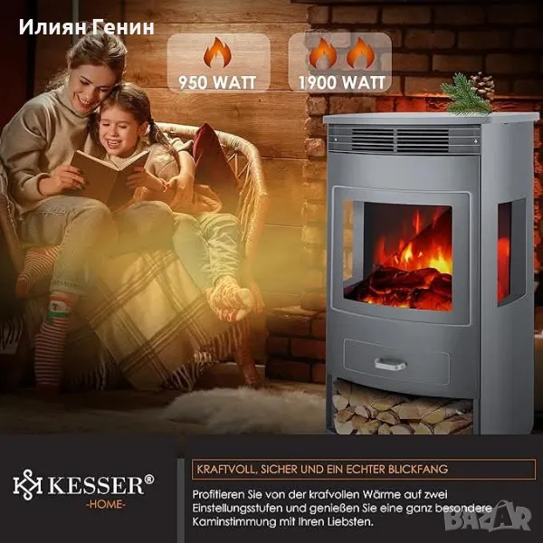 Електрическа камина KESSER® Prio с отоплителен вентилатор нагревател дистанционно управление WiFi приложение 950/1900 W - 400.00лв.