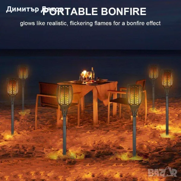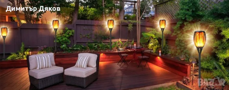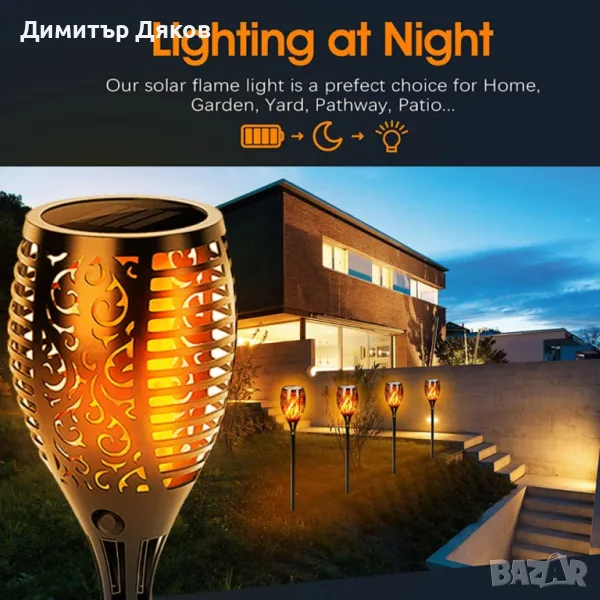 Соларна LED лампа имитираща огън със светлинен сензор → Обява 48136869