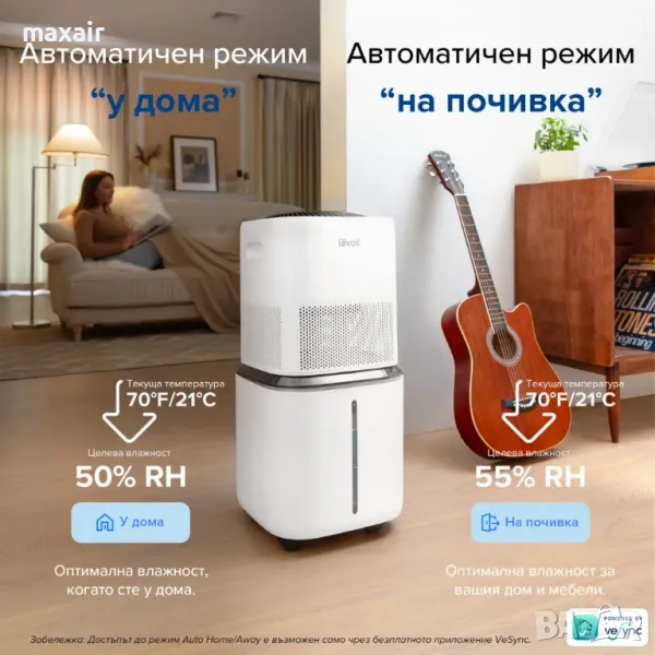Благодарение на безплатното приложение VeSync, може да управлявате