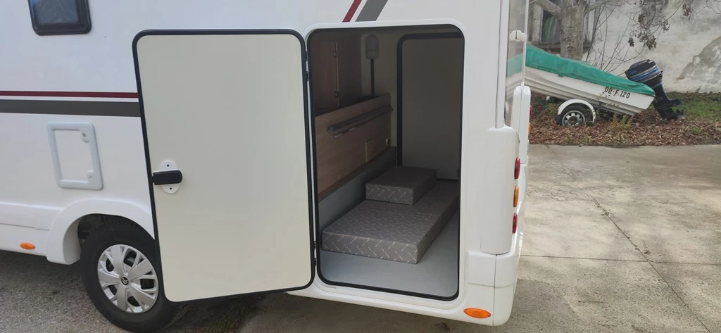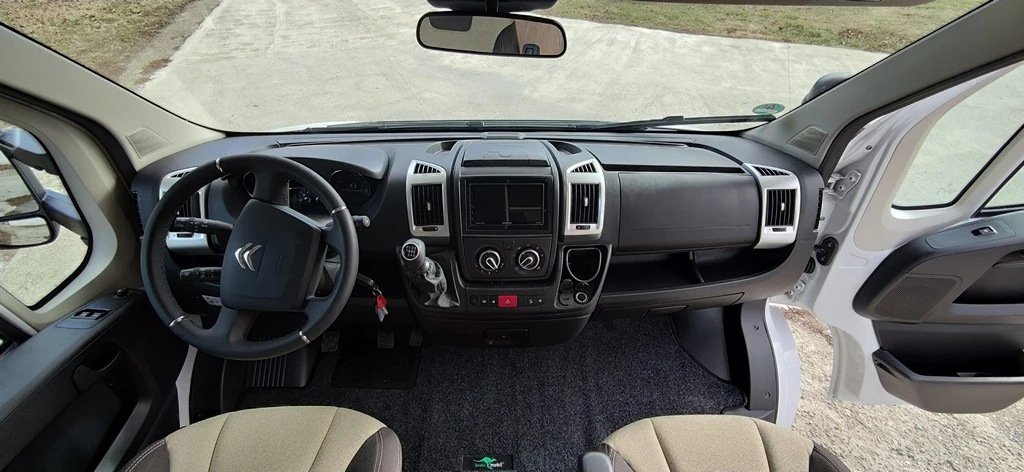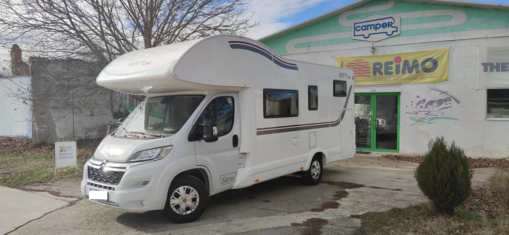 Кемпъра се продава с фактура без допълнителни такси за нотариус. Модел: Giotti Line Siena 440 Шаси: Citroen Jumper Двигател: Diesel 2. 2 140к. с. 4-цилиндров EURO 6 Резервоар за гориво: 90л. Ръчна скоростна кутия Traction+, Hill Holder, Hill Descent, ESP, ABS Наличен круиз контрол Фарове за мъгла Въздушни възглавници от страната на пътника и водача Общо тегло: 3. 500 кг Допустимо тегло за теглене: 2. 800 кг Размер на гумите: 16" джанти Дължина: 6. 99 (м) Широчина: 2. 32 (м) Височина: 2. 89 (м) Брой спални места: 6 Климатик Тип легла: Две двойни легла и преобразуване на холната част в спалня Размер на задното легло: (2) 219x79 / 64 мм Размер на предното легло: 213x153 мм Размер на разтегаемо легло в дневната: 172x130 мм Общо седалки за пътници с предпазни колани: 6 Обем на резервоар за чиста вода: 110л. Обем на резервоар за отпадни води: 100л. Отопляем резервоар за отпадъчни води Газова кутия: 2 x 11 кг Отопление: Truma Combi 4 Truma CP Plus Обем на хладилника: 150л. 230V контакти 12V контакти USB порт Голям гараж за скутер и колела Големи гаражни врати от лявата и дясната страна Тента Окабеляване за сателитна система Радио подготовка и DAB+ Централно двойно заключване 100% LED осветление Усилено предно окачване Интериор - Privileg Щори и комарници на всички люкове и врати Комфортни матраци Камера за задно виждане със 7-инчов монитор Цифров контролен панел
