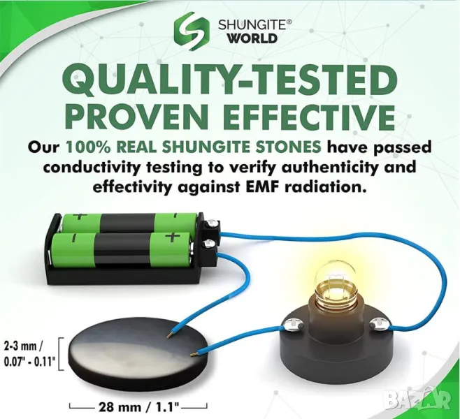Шунгита премахва статичния електрически заряд. Неутрализира Статичното Електричество.