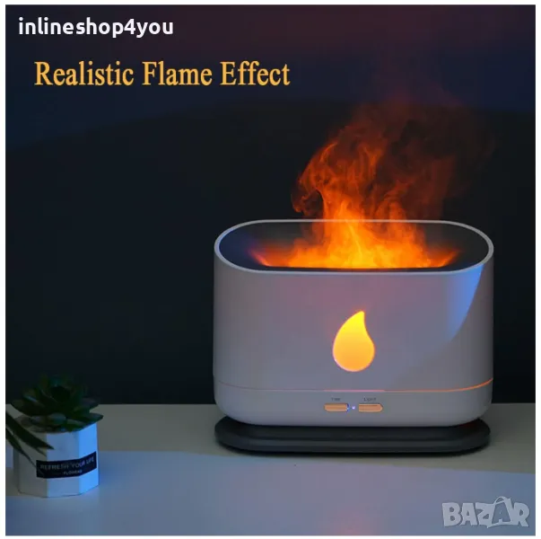 Арома дифузер - Отпуснете се, успокойте, успокойте се и се насладете на живота си максимално с нашия ароматен дифузера, който е експертно изработен с помощта на висококачествен PP материал, процес на покритие с бутони и използва интелигентни LED светлини, комбинирани с ефект на овлажнител на пламък, за да създаде реалистичен атмосфера на пламъка.