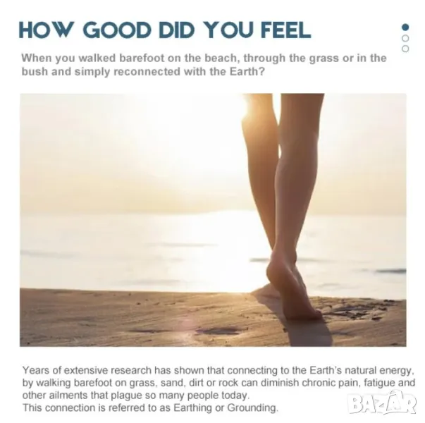 Когато ходите боси по Земята, има прехвърляне на свободни електрони от Земята в тялото Ви, които се разпространяват в тъканите Ви. Ефектът е достатъчен, за да поддържа тялото Ви при същият отрицателно зареден електрически потенциал като Земята. Този прост процес се нарича „Заземяване“.