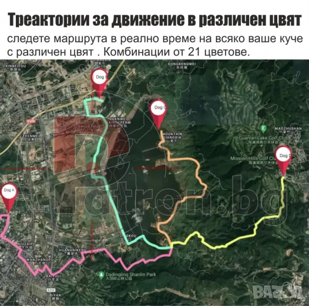 ✅️ Собственикът може да наблюдава маршрута за проследяване на различни кучета едновременно, като зададе цвета на маршрута за проследяване (макс. 21 цвята)