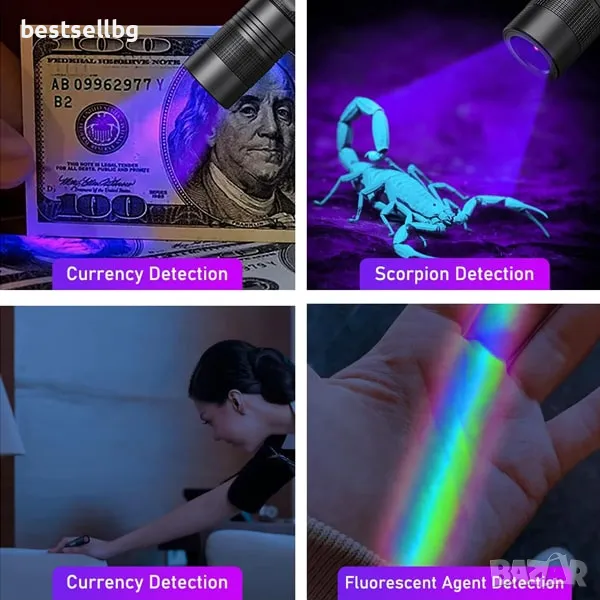 UV фенер акумулаторен мощен ултравиолетова светлина лампа ув фенерче