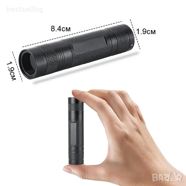 - Компактен и удобен: С размери 83 мм х 19 мм и тегло едва 35.6 грама, фенерът лесно се побира в джоба или чантата.
