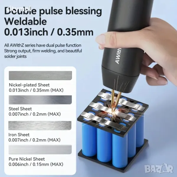 Заваръчният апарат е идеален за работа с различни видове цилиндрични батерии, като 18650/26650/36650, както и батерии за мобилни телефони или други електронни устройства, които изискват ремонт. Той е идеален за подмяна на повредени батерии, спестява пари и помага за опазване на околната среда чрез удължаване живота на електронните устройства.