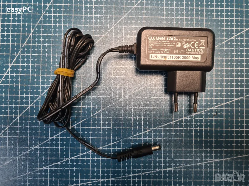 Продавам оригинален захранващ адаптер ELEMENTECH AU1091806e 18V 0.5A. Адаптера е употребяван, но е напълно функционален и работи.