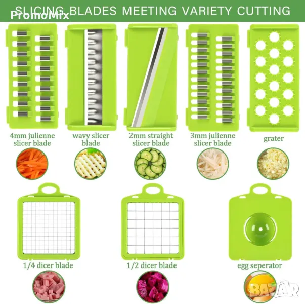 Благодарение на приставките ще имате голямо разнообразие от опции за рязане дори на мека храна, като плодове, сирена, свежи подправки, месо, зеленчуци и много други.