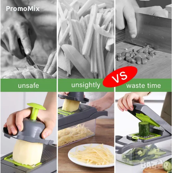 Насладете се на бързо, лесно и прецизно приготвяне на всякакви ястия с помощта на мултифункционално кухненско ренде Prokitchen DE-QCQ-14A-XBS Grater 12в1.