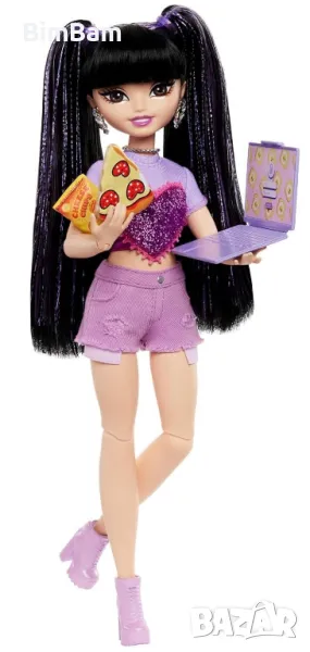 Куклата е облечена в шикозен тоалет, състоящ се от искрящо горнище с лилаво сърце, лилави дънкови шорти и ботуши. Тя е с дълга черна коса, която е мека на допир.
